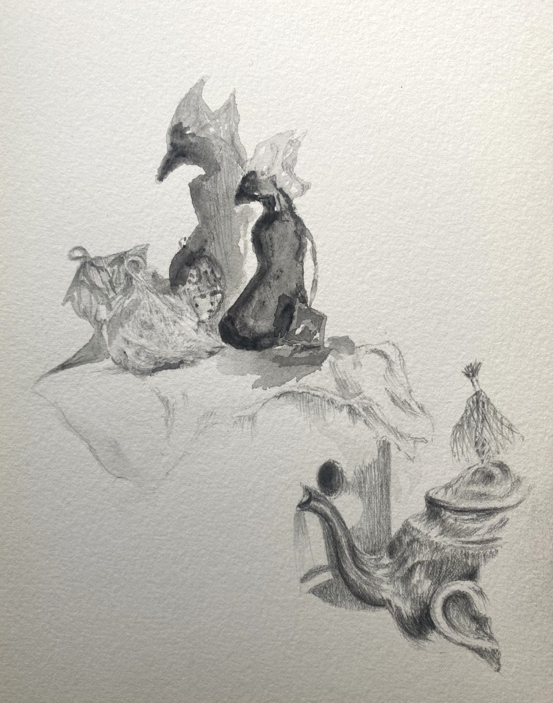 Rose Lodge, Cammy’s Teapot Trip, 2022, Ink, Gouache and pencil on watercolour paper.